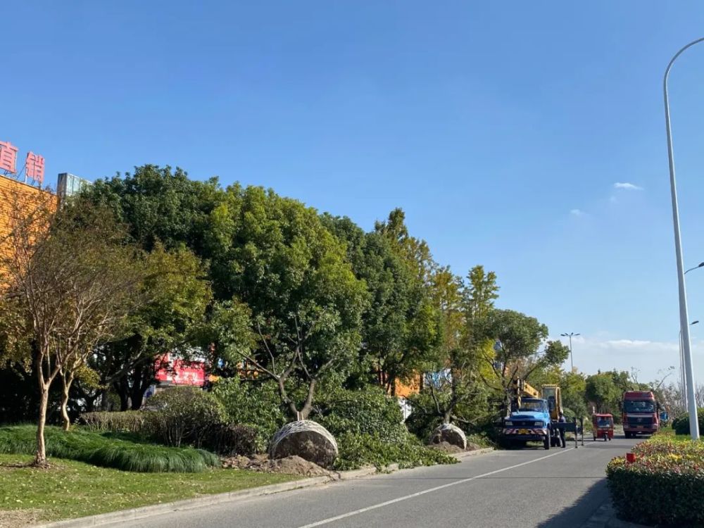 首先将香樟树、朴树、榉树、榔榆树、银杏等大规格乔木进行移植,之后再移植樱花、紫薇、桂花、罗汉松等小乔木以及无刺构骨球、海桐球等球类。