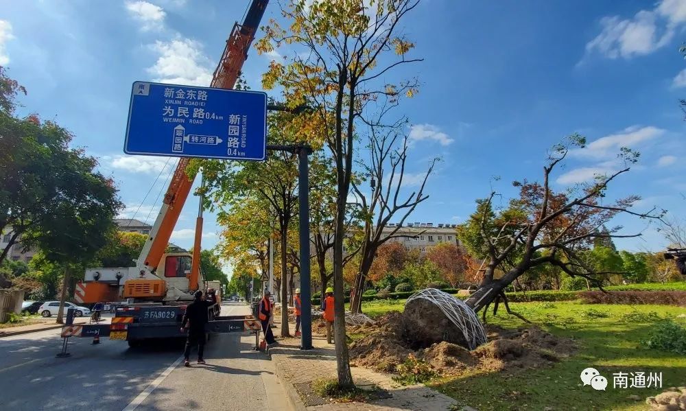 江海大道东延(综艺集团东-扬子江路)工程可行性研究报告日前正式获批近日记者在通州城区看到道路绿化树木移植工作已经率先展开